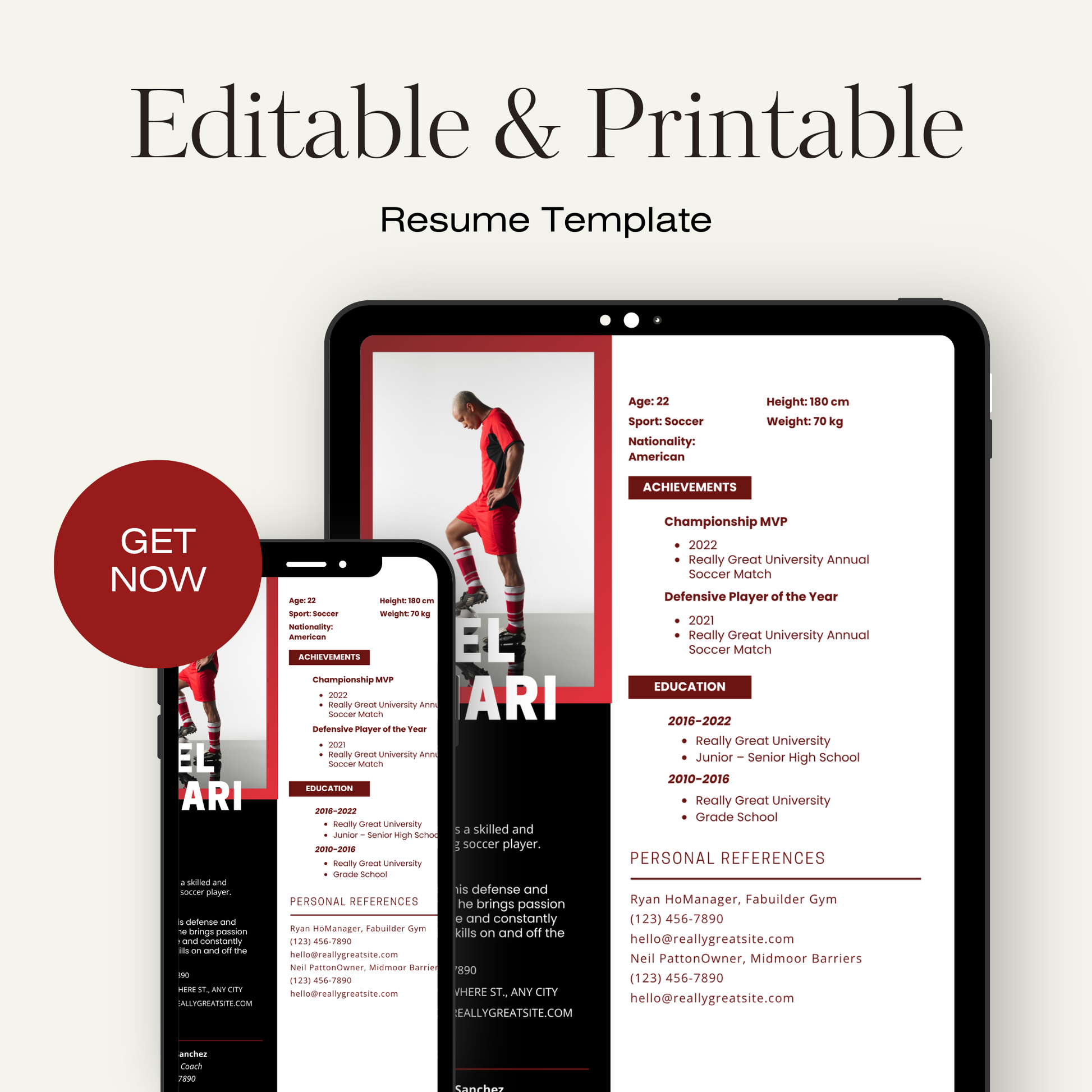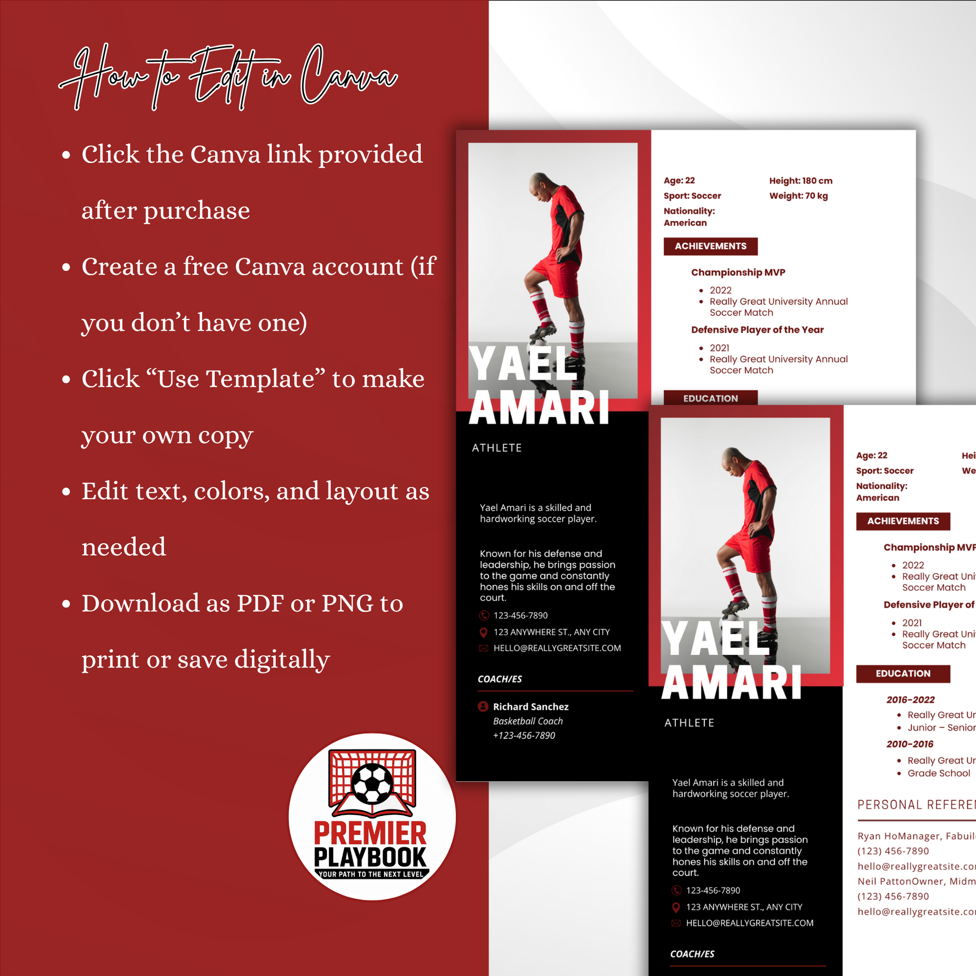 Editable Athlete Resume Template – College Recruiting Canva Template for Student Athletes