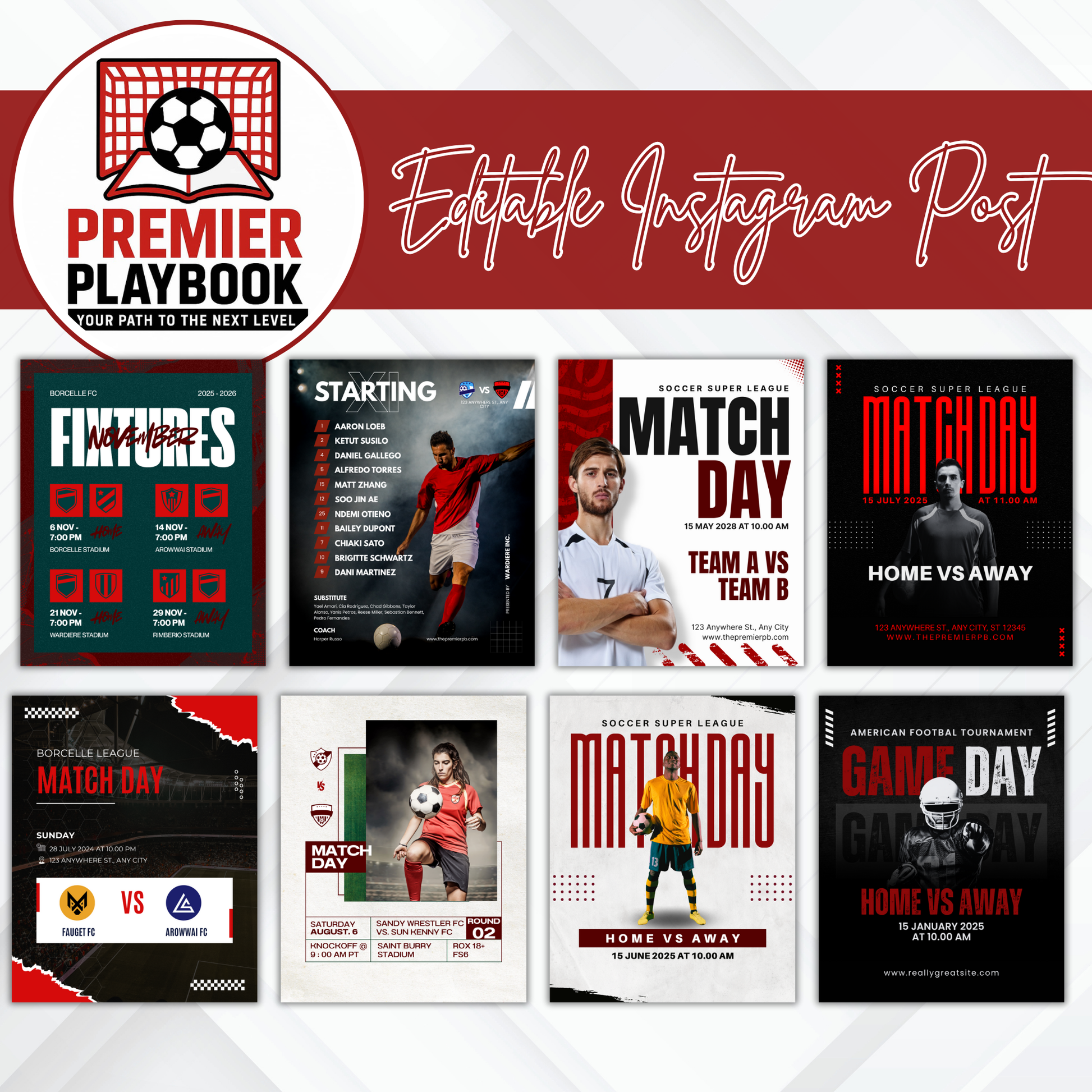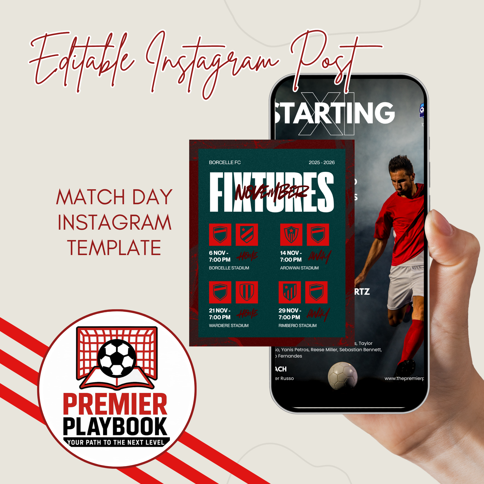 Editable Match Day Instagram Post – Canva Template for Soccer Players & Teams
